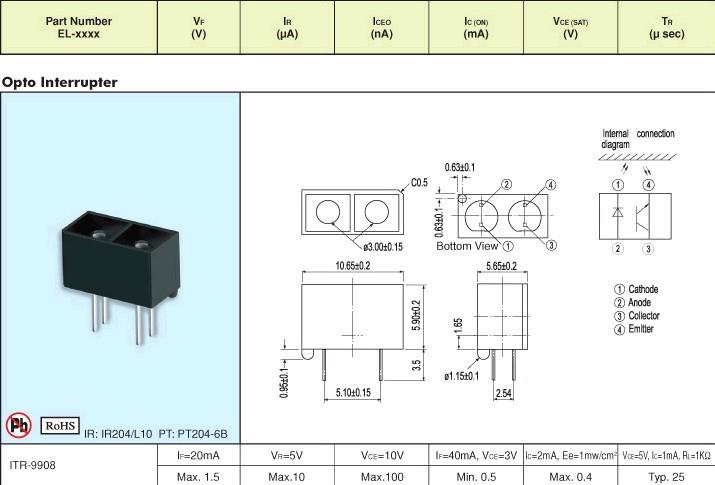 1,在選擇縫隙光耦合器的外圍電路時,首先要確定縫隙光耦合器接收管(光電開關)的負載電阻,然后根據ITR1100型縫隙光耦合器的轉換效率選擇紅外發射管的電流:例如:負載電阻為10 k(包括后續電路的等效負載),電源電壓為5 V,紅外接收管的電流不能超過(5-0.4 / 10 k)= 0.46 mA,其中0.4是接收管的飽和電壓是。 ITR1100的轉換效率為30%至40%。如果采用30%,則將紅外發射管電流選為0.46 / 30%= 1.5 mA,并考慮到諸如環境溫度和灰塵等不利因素的影響。保持1.5至2的距離。實際電流為2.3至3 mA。然后根據該值選擇限流電阻(5至1.2)/ 3 = 1.3 k,1.2是紅外線發射管的正向壓降。