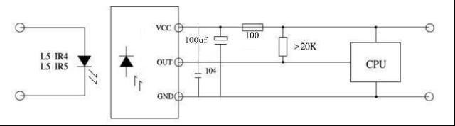 紅外線一體化集成接收頭:通常是有接收、放大、解調一體頭,解調之后,數據“0”和“1”差通常在高低電平的時間或信號周期上反映出來,進行單片機解碼的時候,中斷輸出腳與單片機外部的連接,確定外部中斷間隔的時間以檢索數據。 重點是找到數據“0”和“1”之間的差異。 該輸出可以連接到CMOS、TTL電路,這類型的紅外線接收器一般廣泛用于空調、電視、VCD之類的電器中。