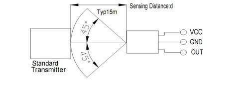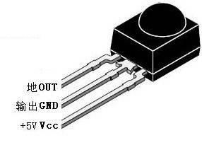 三個引腳分別輸出為GND、VCC,和OUT,為接地、電源以及信號輸出。不同型號的紅外線接收頭的引腳排列也不同。